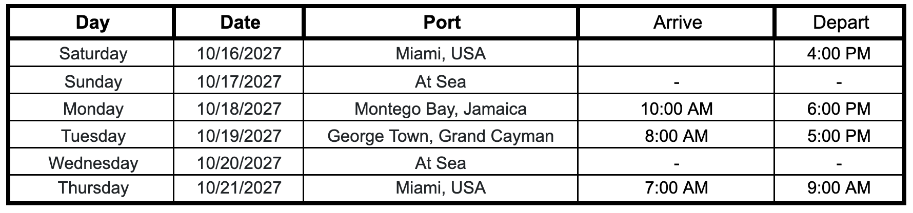 - Miami – Montego Bay, Jamaica – George Town, Grand Cayman + 2 sexy days at sea!
