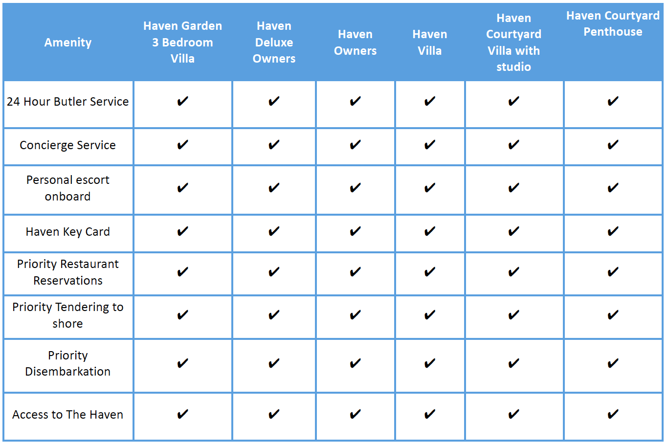 The Haven suites are our most luxurious, spacious, and well-equipped cabins. In