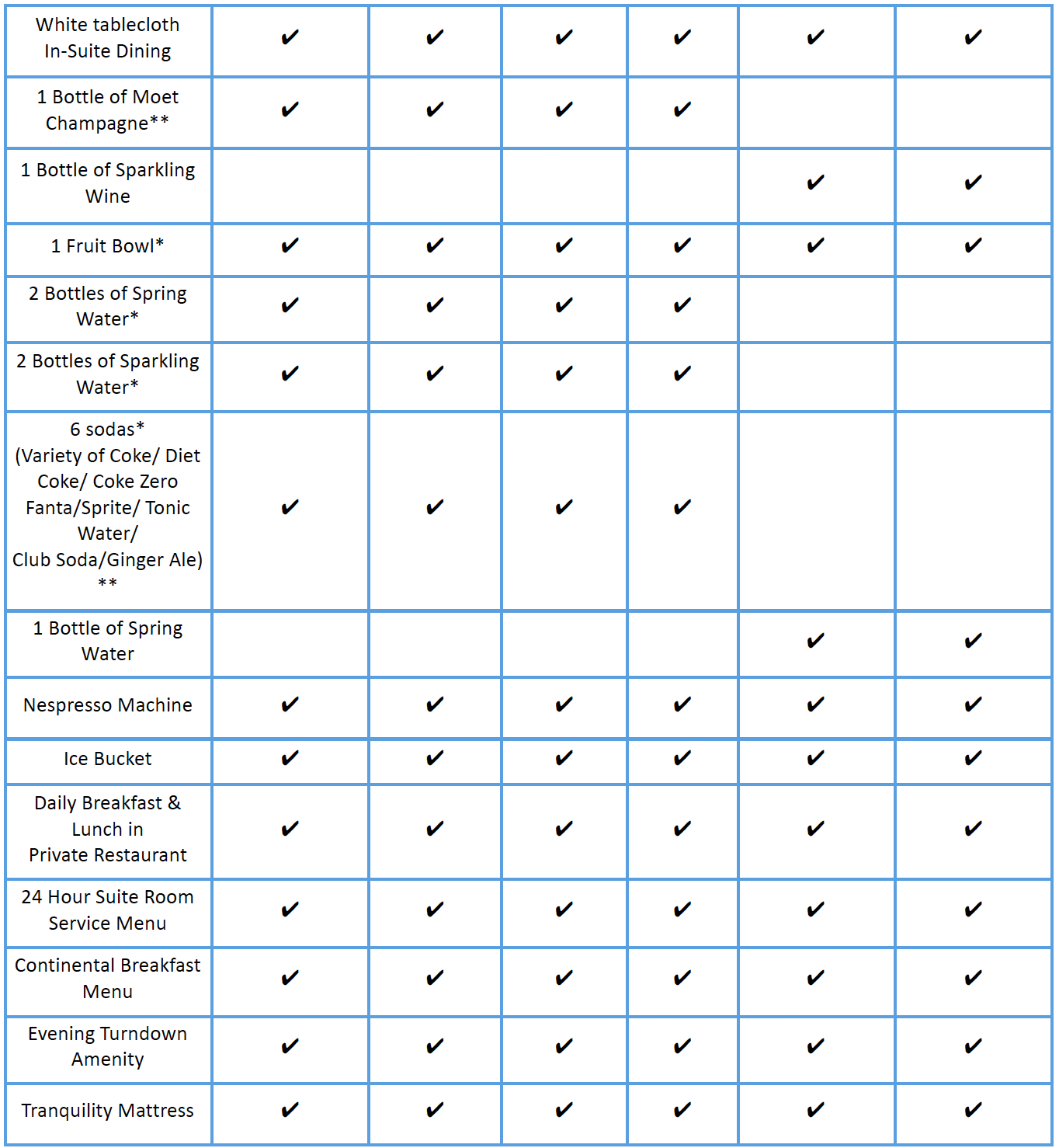 - Expanded room service breakfast menu