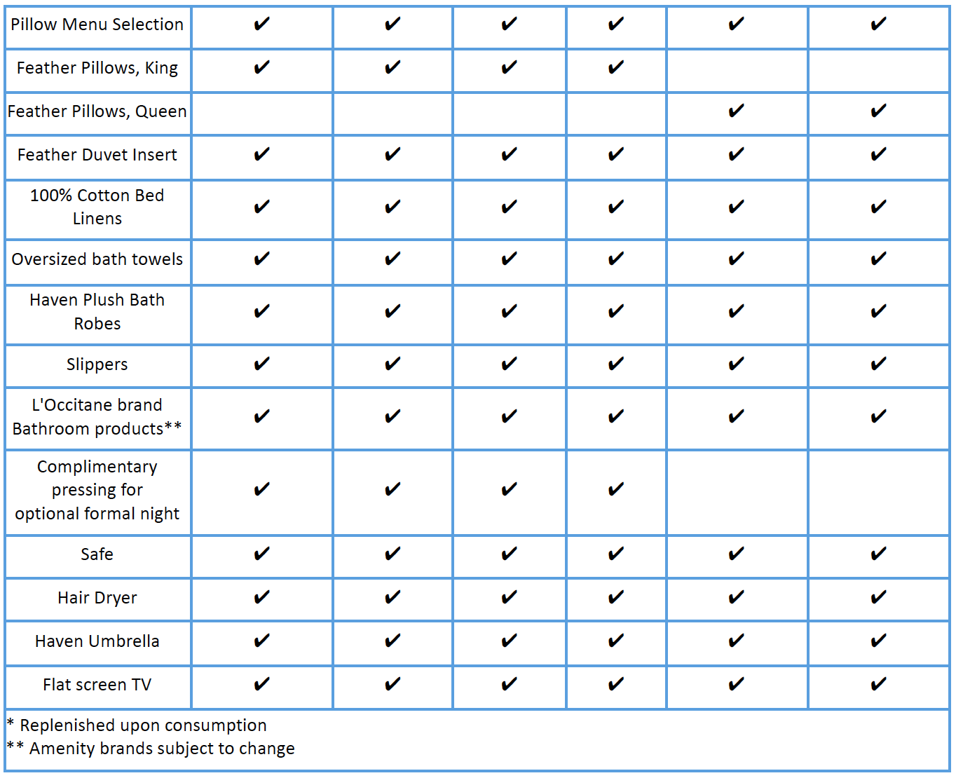 - Amenities are subject to change without notice.