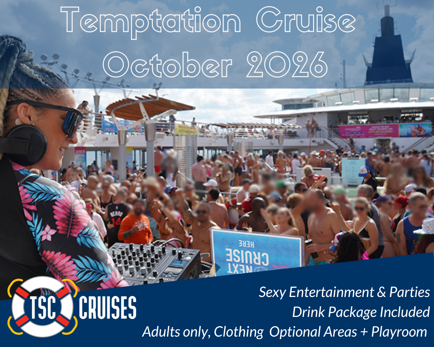 Adding the Temptation Cruise October 2026 to our lineup is a great option because it differs from our other cruises. Everyone likes to experience the lifestyle. We all have a variety of flavors we enjoy in life, so offering a variety of sexy cruise options can only be a good thing. Temptation Cruise will offer a sexy brand for some that will provide a different level of entertainment to both our long-time ‘Swinger Cruise’ clients who are ready to try something different and to many other new clients who want a sexy vacation.